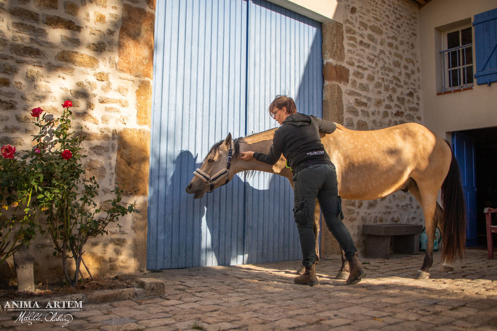 Depuis ce jour, intriguée et passionnée par cette technique j’ai décidé de suivre une formation (4 ans à l'école OUMA TE ATE dans l’Ain) et d’en faire mon métier afin de permettre à d’autres chevaux de bénéficier de ce confort et ce bien-être.